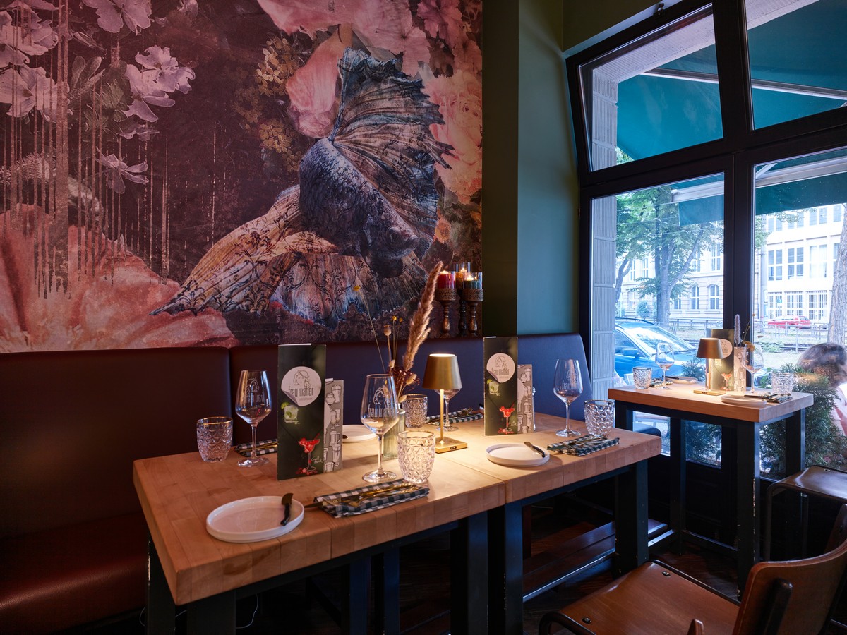 Dabei sind wir nicht dogmatisch. »Frau Mahér« schließt Gräben, statt sie zu vertiefen. Ob Sie also Fleisch und Fisch lieben, vegetarischem oder veganem Essen den Vorzug geben, unsere Speisekarte und wechselnden Tagesangebote machen Sie in jedem Fall glücklich.